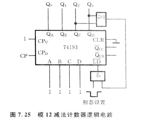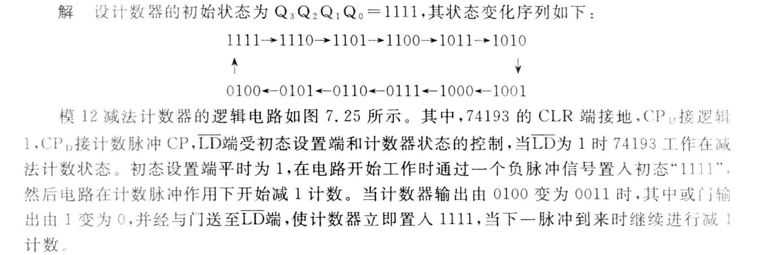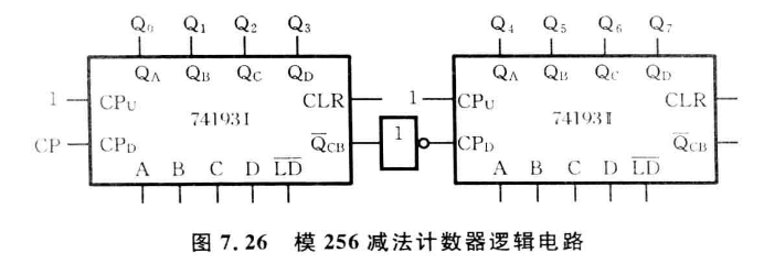 例如将两片74193按图所示进行连接,即为一个模为256的减法计数器