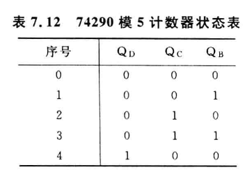 模5计数器 :若将计数脉冲加到CPB端,并从QD,QC,QB端输出,则可实现五进制加法计数